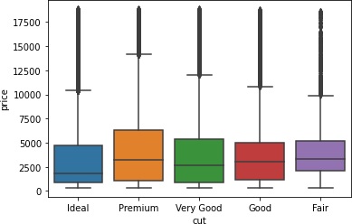 >>> sns.boxplot(x='cut', y='price', data=data)