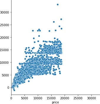 >>> g = sns.relplot(x=test_y, y=pred, aspect=1)